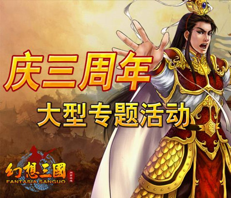 《幻想三国》三周年,邀您一起乐翻天。三国争锋谁主沉浮,且看千古风流人物,多少豪杰名载青史。畅游爱上玩家《幻想三国》,一展王者风范,就有好礼相送。更多好礼,更多惊喜,尽在爱上玩家《幻想三国》三周年大型专题活动。更多游戏资讯敬请关注爱上玩家官方网站。